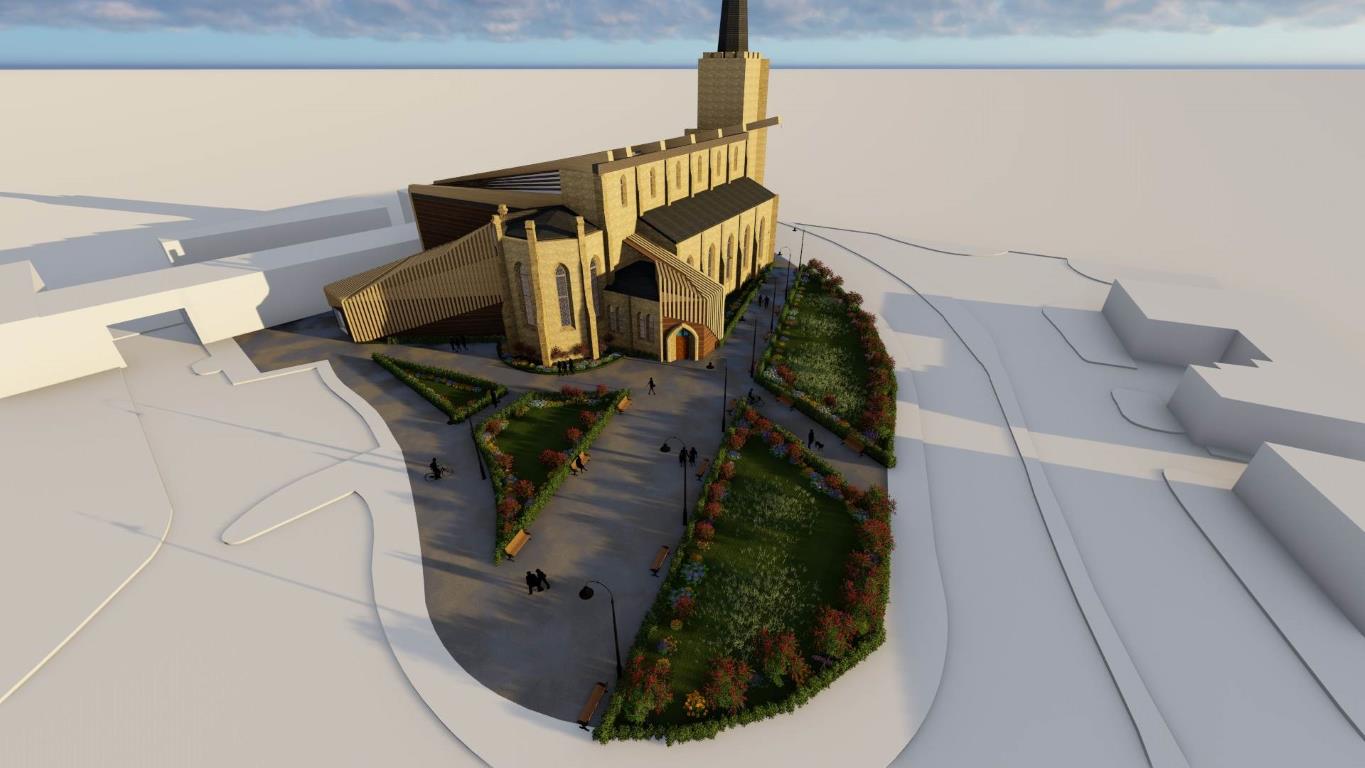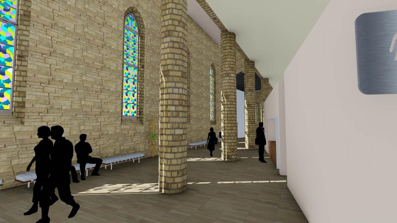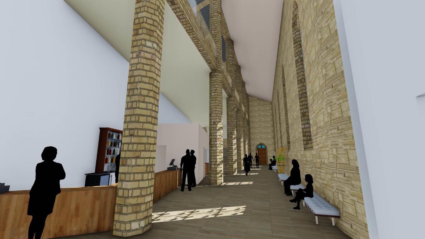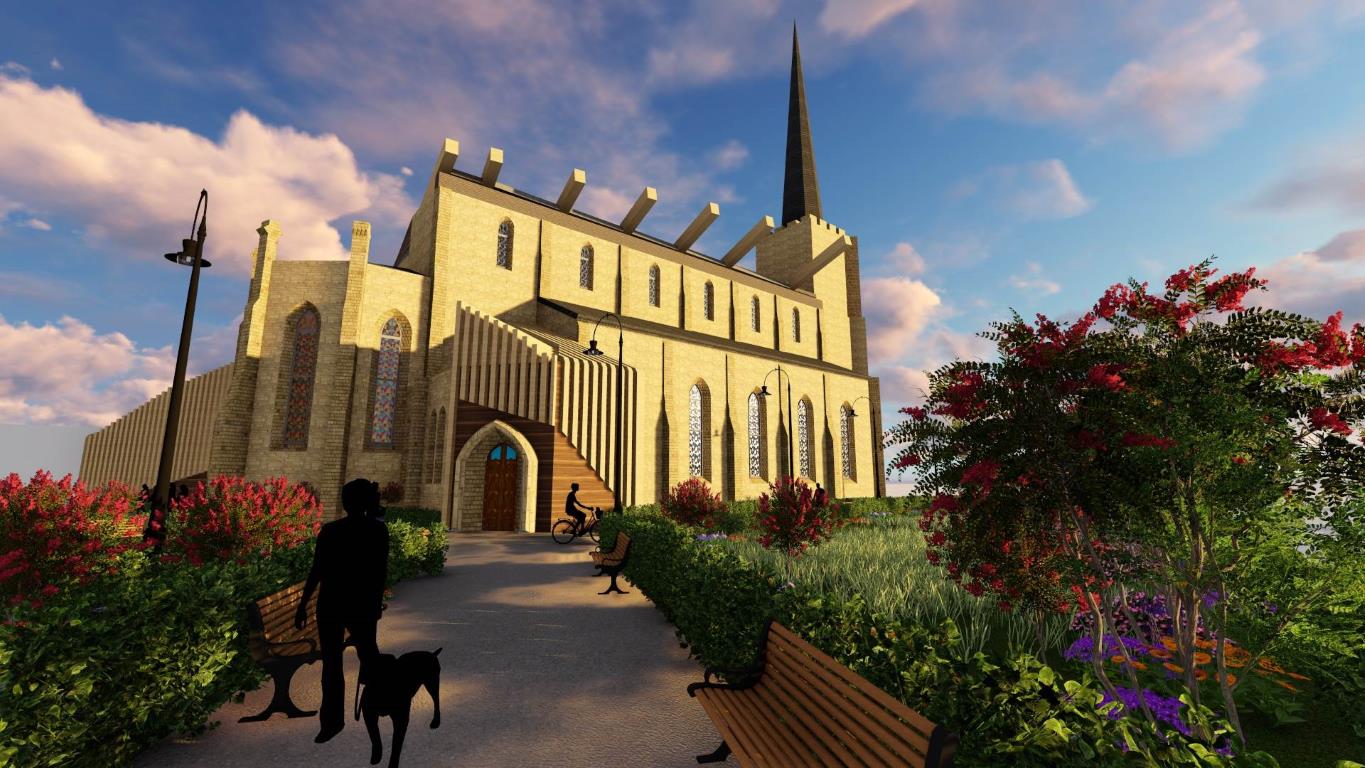 I decided to cut St. Pauls church in half as I wanted to both keep the main features of the building but also show that the building had a history. I kept the apex and spire of the church, as I believed these were some of the most redeeming features of the building. I then protruded the extension on the opposite side to act like a manifestation. After exploring the flowing shapes of organismic, I wanted to create the east face of the building into an interesting and flowing form as this was the main face of the building that people from the campus would see. In order to balance out the traditional build and the extention, I changed the main entrance from the church into a more dynamic shape to compliment the extension and balance it out.