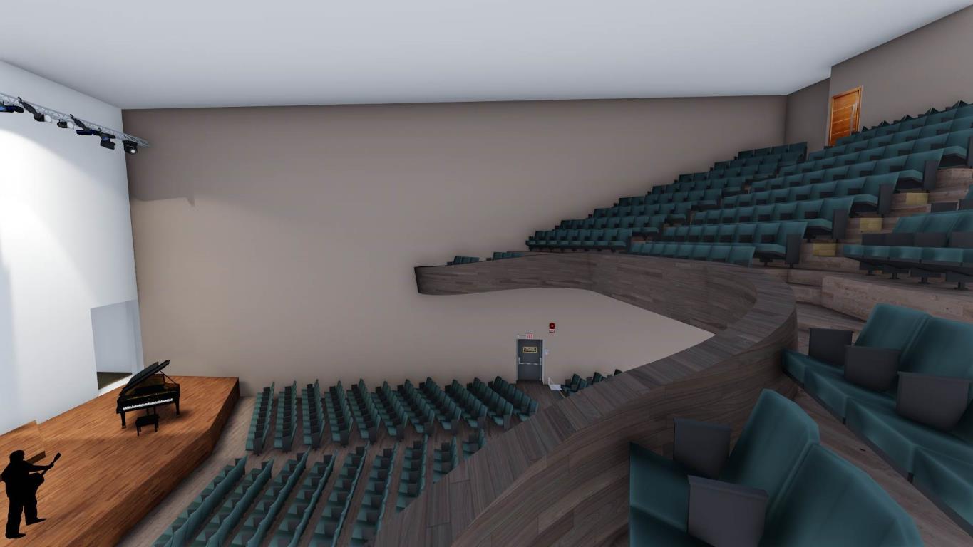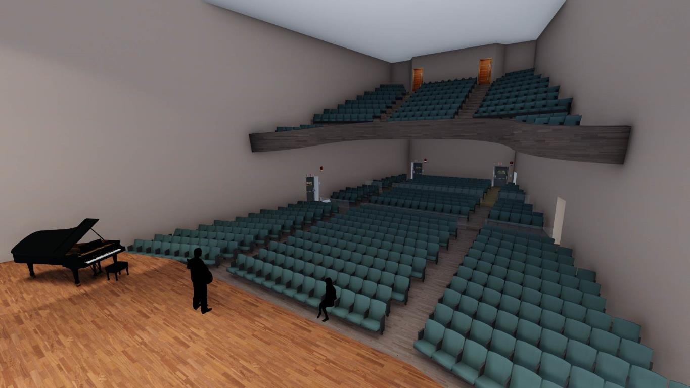 The theater would be constructed by using the box in a box construction method, which is essentially an independent structure isolated from the rest of the main building. The theater will be built by this method as it creates the best acoustic properties for the space and helps to isolate the space from all of the exterior noises from outside. The flooring of the theater building is constructed via the jack up flooring construction method with acoustically isolated walls built on top to create the interior