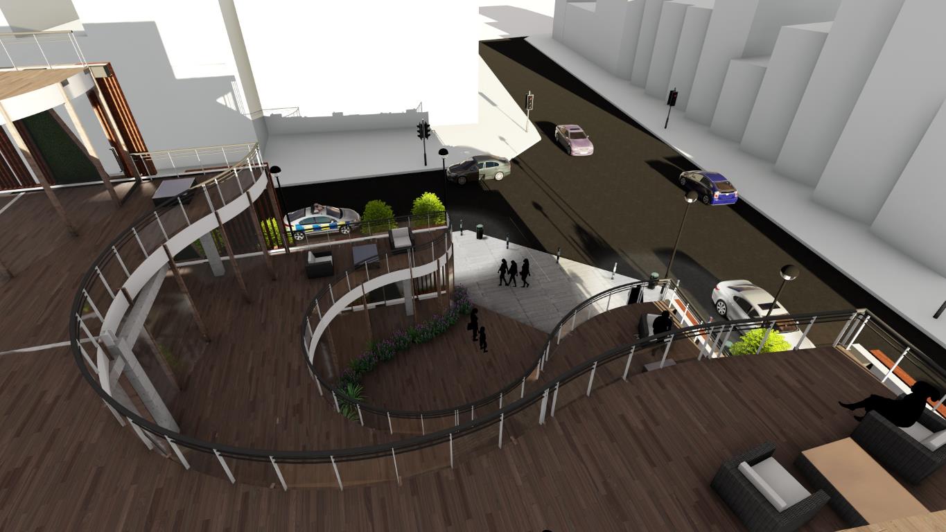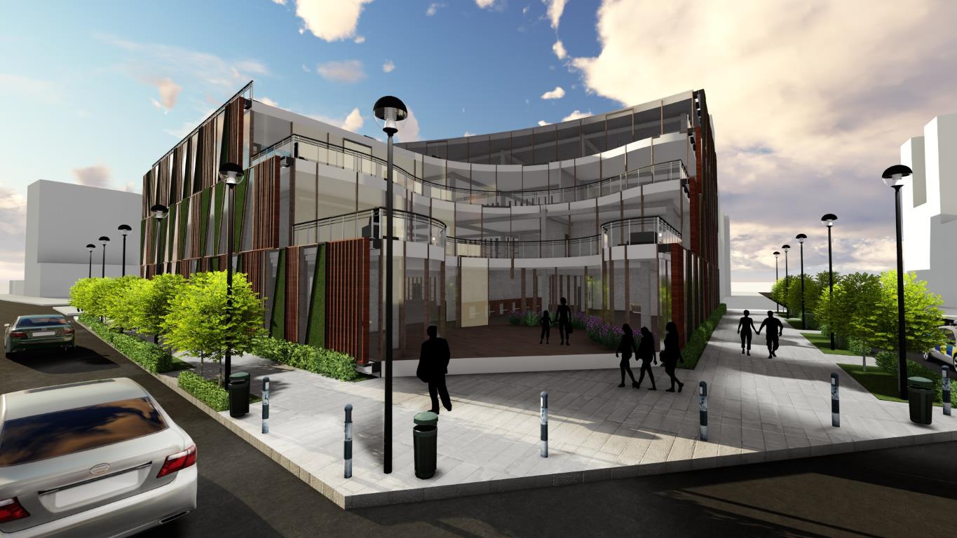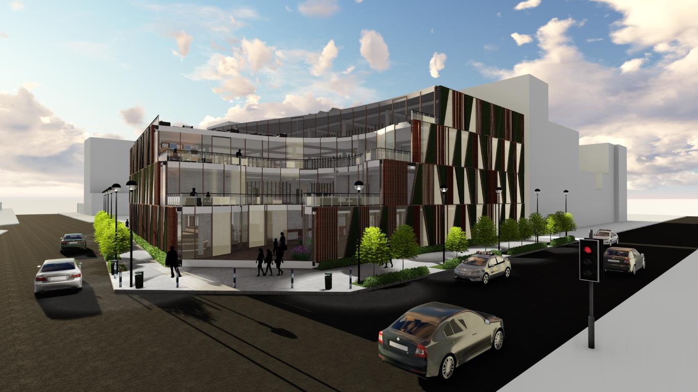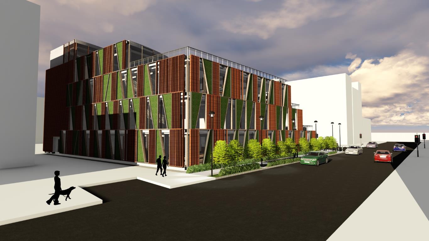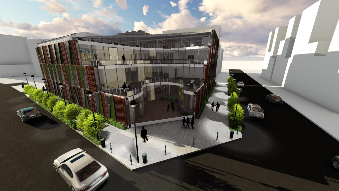 The outer leaf of the double façade is comprised of 3 main components which are the red cedar timber louvers, pilkington low e insulight glass and a green wall. the green wall has 3 main functions- to filtrate the highly concentrated co2 levels of the outside air into the building, to help act as a shading element and to act as an aesthetic element to the façade. the green wall is a modular system with built in meshwork to enable continous plant support for climbing plants to create a live curtain.the felt layers continous plant support for climbing plants to create a live curtain.the felt layers within the structure contain growth mediums as do the plant pots themselves. automatic irrigation systems are also installed into the top of the green walls to ensure the green walls are healthy. by adding the irrigation systems, the air surrounding the building will be cooled by the water and so will allow cooler air to enter the building via the double façade.